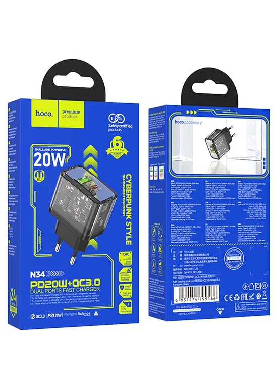 СЗУ Hoco N34 Dazzling PD20W+QC3.0 Transparent black