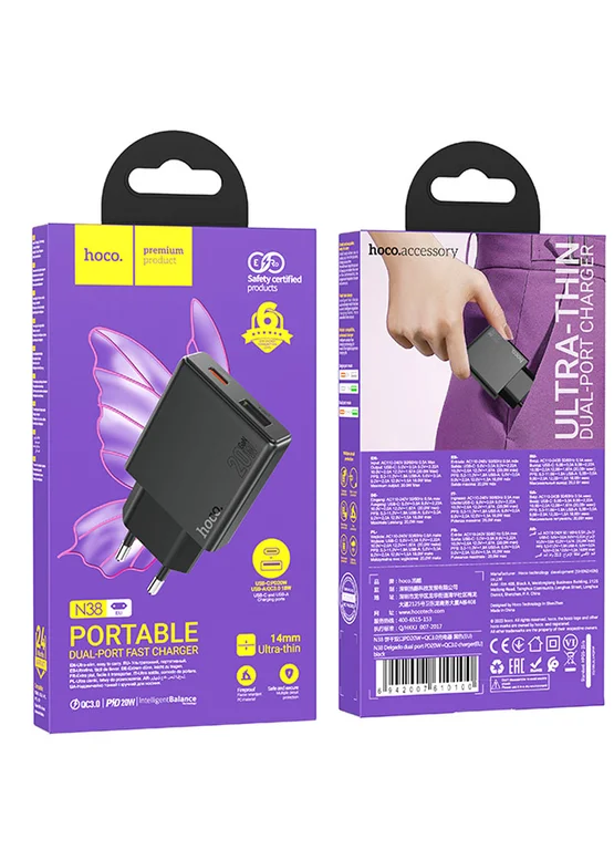 СЗУ Hoco N38 Delgado PD20W+QC3.0 Black