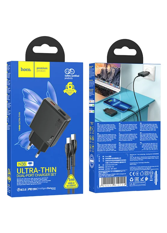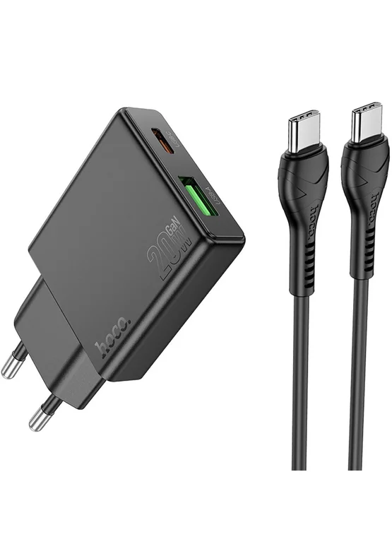 СЗУ Hoco N38 Delgado PD20W+QC3.0 + Type-C to Type-C Black