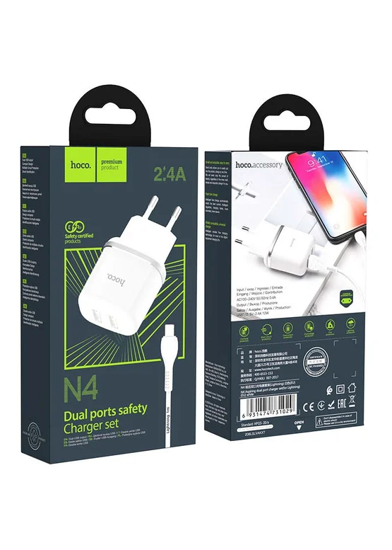 СЗУ Hoco N4 (2USB/2.4A) + Lightning Белый