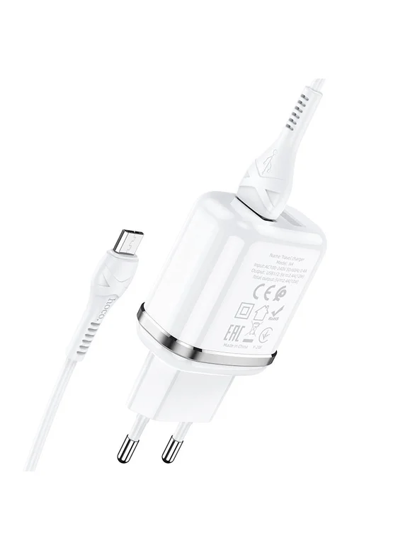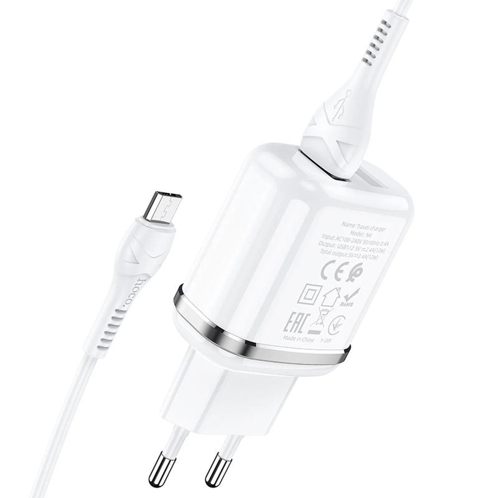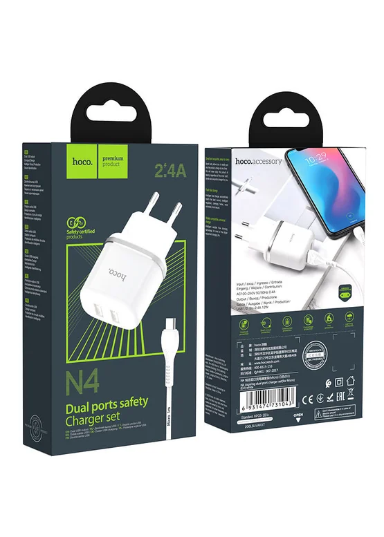 СЗУ Hoco N4 (2USB/2.4A) + MicroUSB Белый
