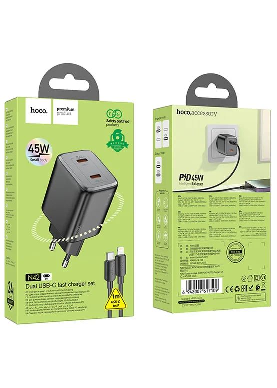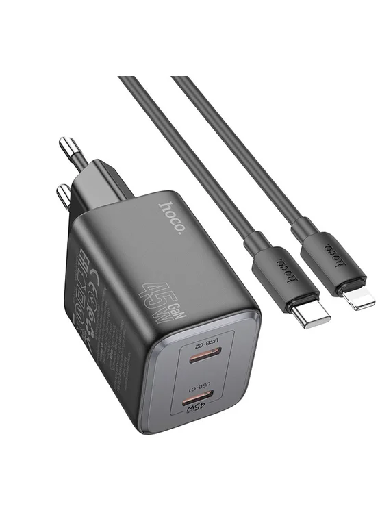 СЗУ Hoco N42 Elogiado 2C PD45W + Type to Lightning Black