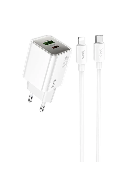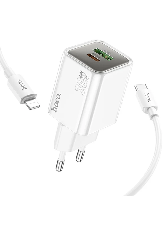 СЗУ Hoco N46 Glorious PD20W+QC3.0 (1USB-A/1C) + Type-C to Lightning White