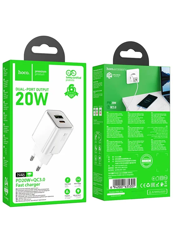 СЗУ Hoco N46 Glorious PD20W+QC3.0 (1USB-A/1C) White