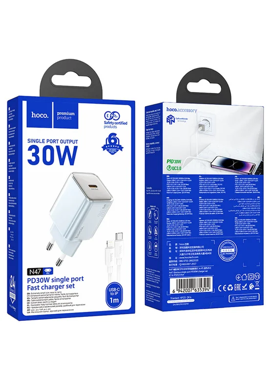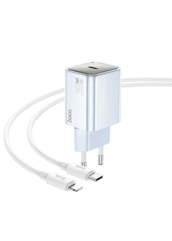 СЗУ Hoco N47 Glorious PD30W (1USB-C) + кабель Type-C to Lightning Blue