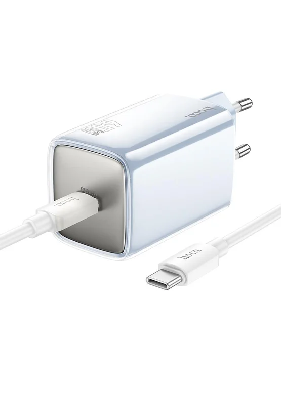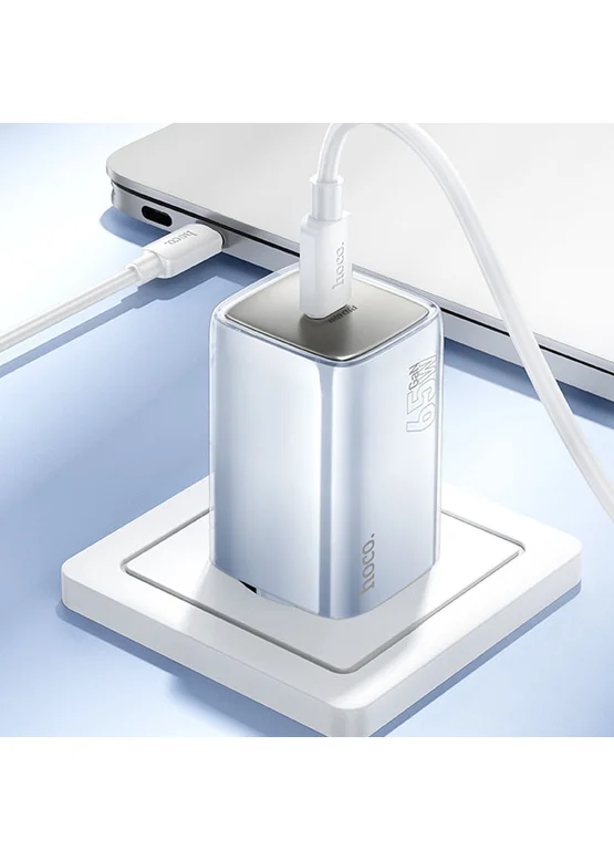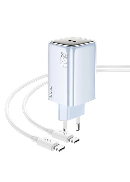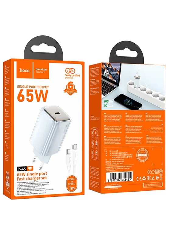 Мощное и компактное сетевое зарядное приспособление с одним портом USB-C, поддержкой PD/QC/FCP/AFC до 65W и EU-вилкой.