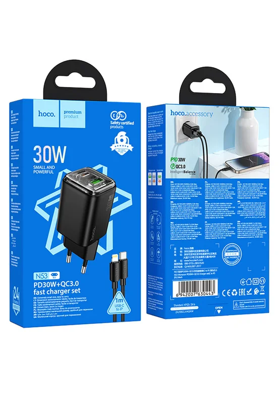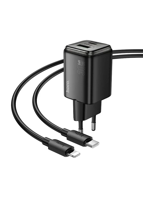СЗУ Hoco N53 Monsoon PD30W+QC3.0 (1USB-A/1C) + кабель Type-C to Lightning Black