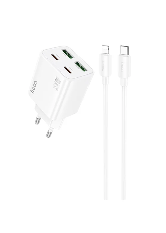 СЗУ Hoco N56 Fundador PD30W four-port (2C2A) + Type-C to Lightning White