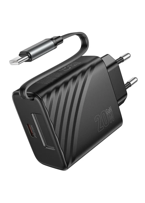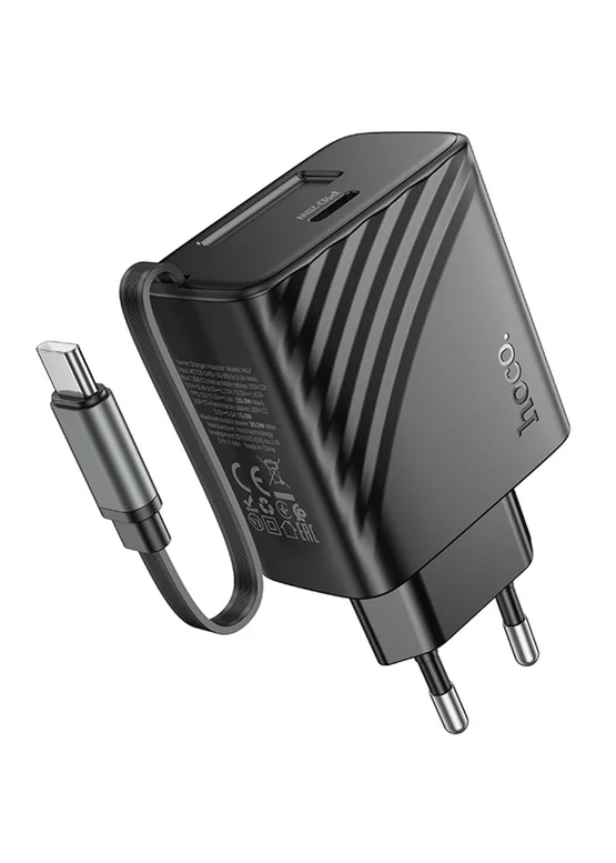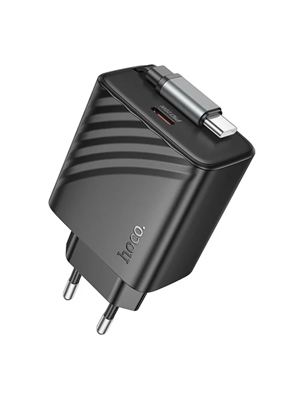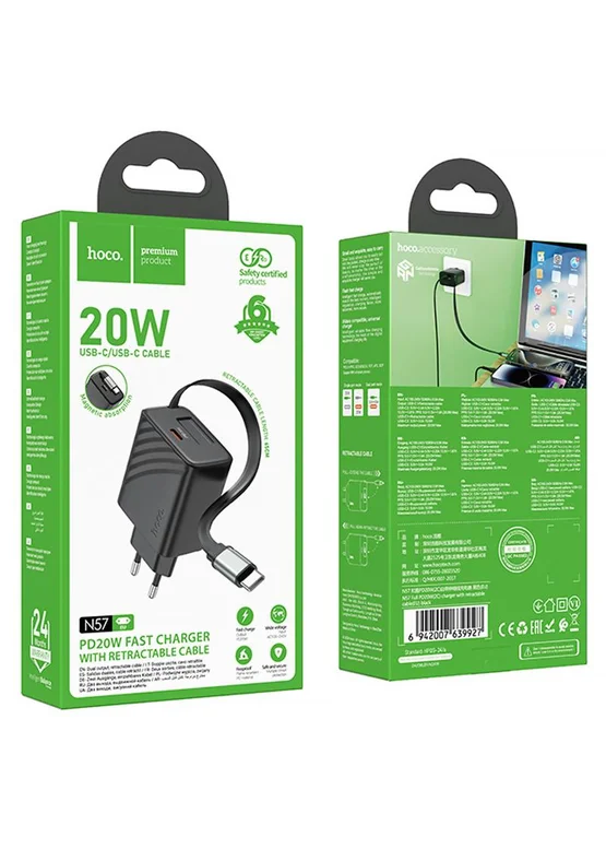 СЗУ Hoco N57 Full PD20W with retractable cable Type-C (2USB-C) Black