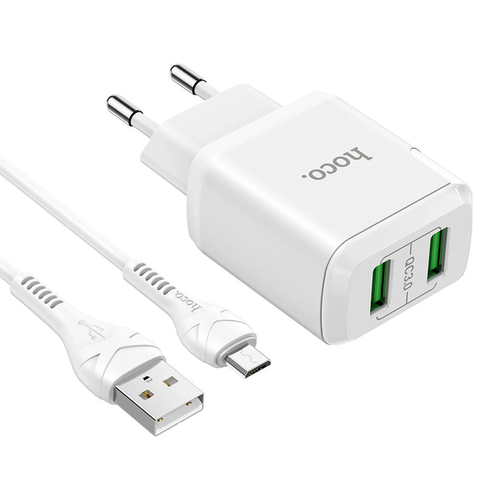 СЗУ HOCO N6 QC3.0 (2USB/3A) + USB - MicroUSB Белый