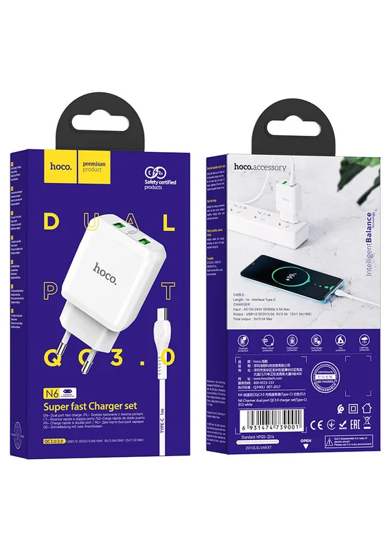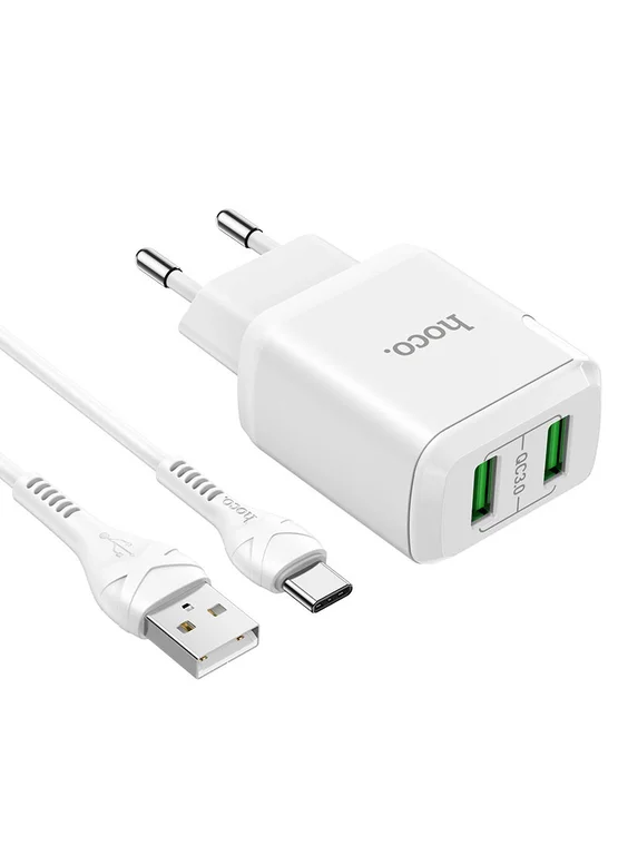 СЗУ HOCO N6 QC3.0 (2USB/3A) + USB - Type-C Белый