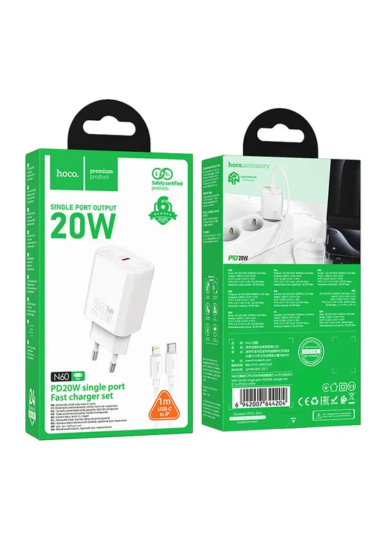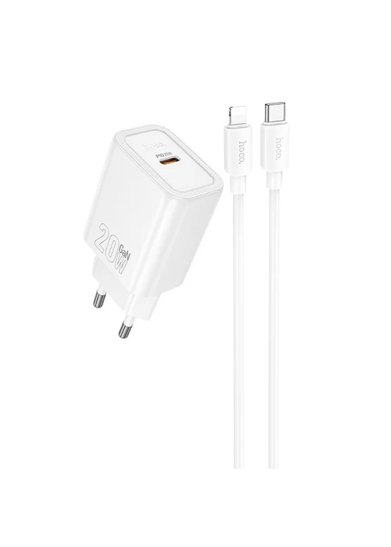 СЗУ Hoco N60 Gentle PD20W (1USB-C) + кабель Type-C to Lightning White