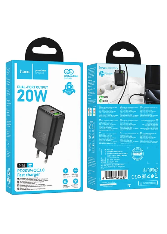 СЗУ Hoco N61 Gentle PD20W+QC3.0 (1USB-A/1C) Black