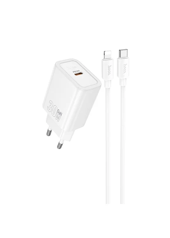 СЗУ Hoco N62 Gentle PD30W (1USB-C) + кабель Type-C to Lightning White