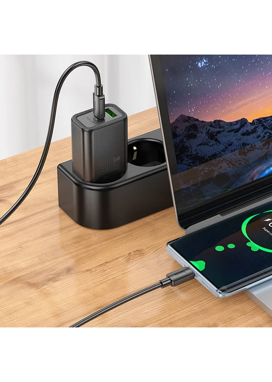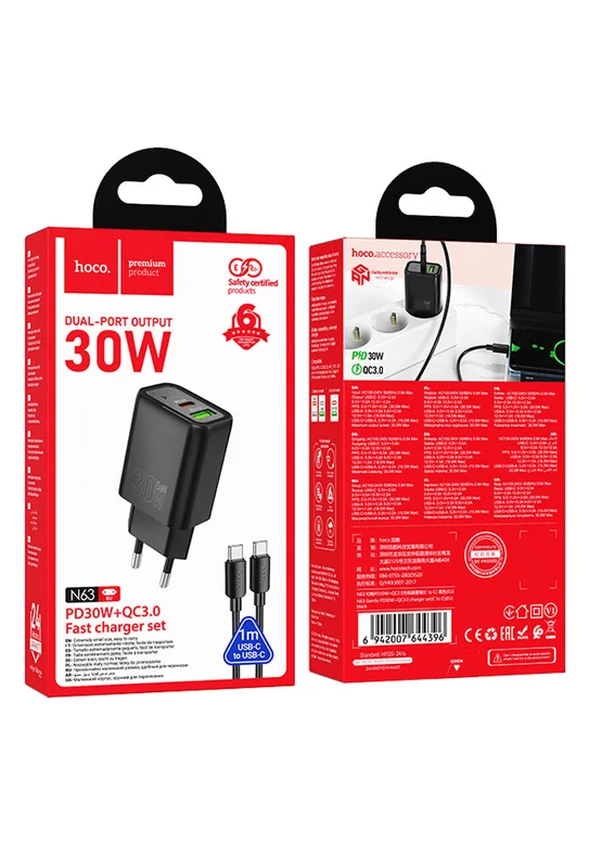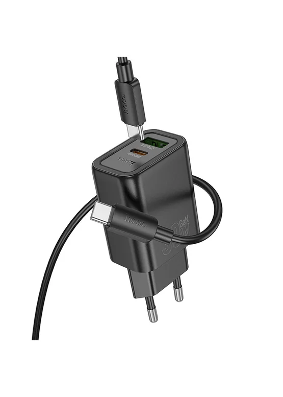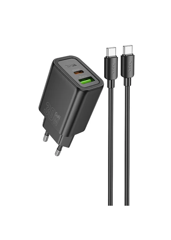 СЗУ Hoco N63 Gentle PD30W+QC3.0 (1USB-A/1C) + кабель Type-C to Type-C Black