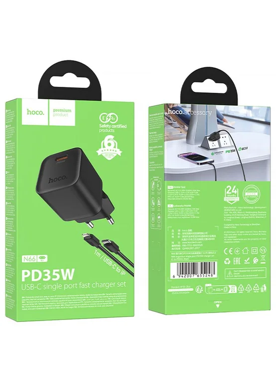 СЗУ Hoco N66 Ingenious PD35W (1USB-C) + кабель Type-C to Lightning Black