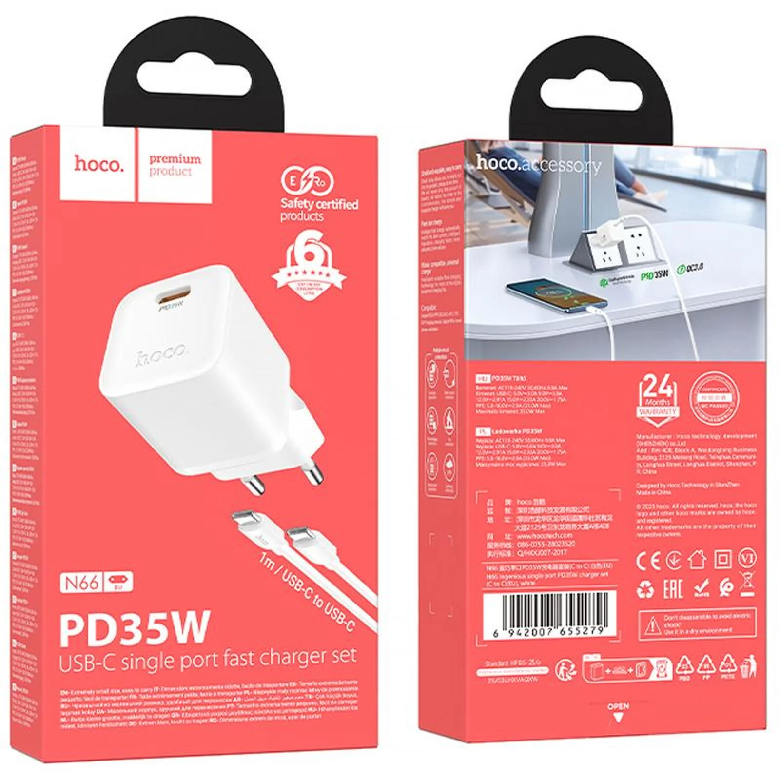 СЗУ Hoco N66 Ingenious PD35W (1USB-C) + кабель Type-C to Type-C White