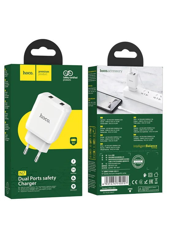 СЗУ Hoco N7 (2USB/2,1A) Белый