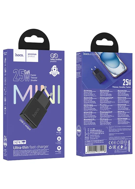 СЗУ Hoco N74 Speed ultra-thin PD25W (1USB-C) Black