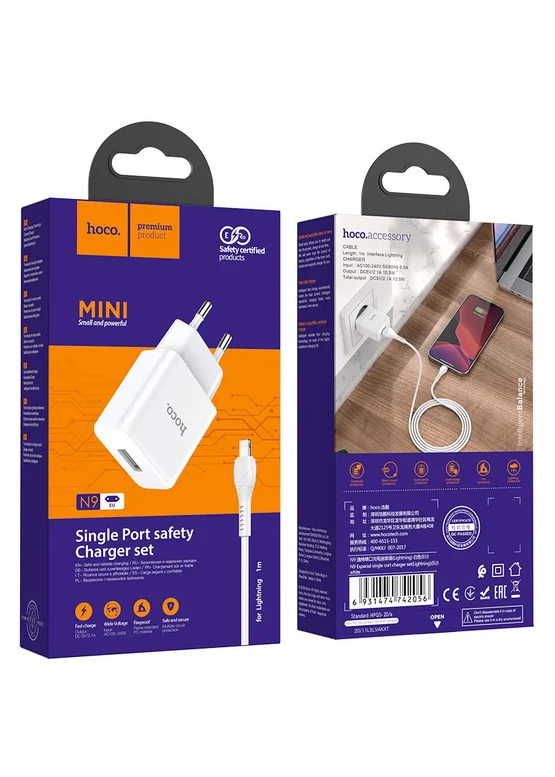 СЗУ Hoco N9 (1USB/2,1A) + Lightning Белый