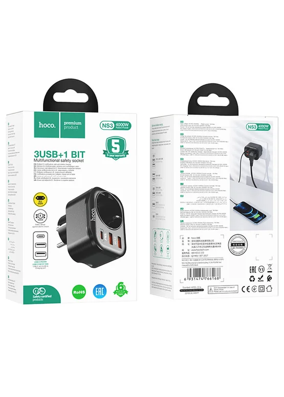 СЗУ Hoco NS3 Multifunctional PD20W (2USB/1Type-C/1xSocket) Black