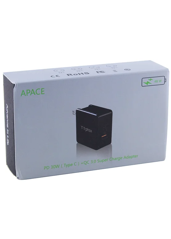 СЗУ PD адаптер T-phox (48W: PD 30W + USB QuickCharge QC 3.0 18W) Черный