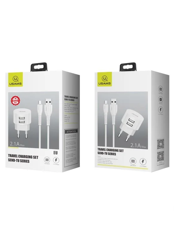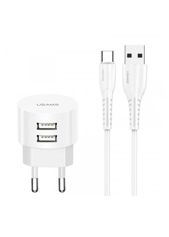 СЗУ Usams T20 Round Travel + U35 Type-C кабель (Белый)