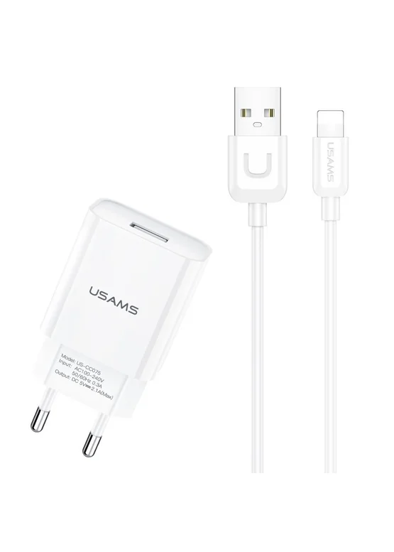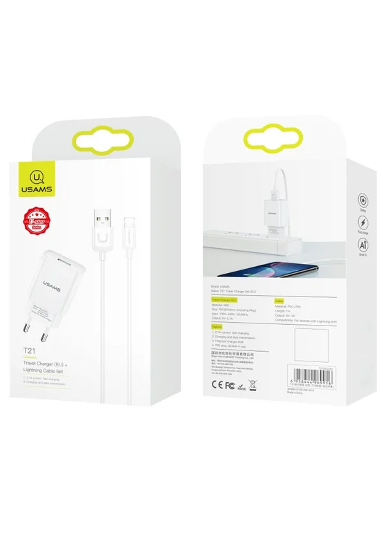 СЗУ USAMS T21 Charder kit - T18 single USB + Uturn Lightning cable Белый