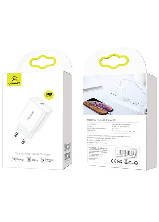 СЗУ USAMS US-CC069 T14 PD Fast Travel USB Charger (EU) (Белый)