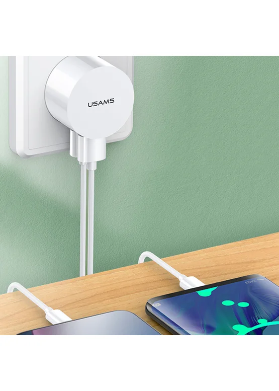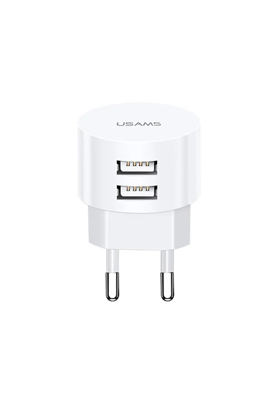 СЗУ USAMS US-CC080 T20 Dual USB Round Travel Charger (EU) (Белый)