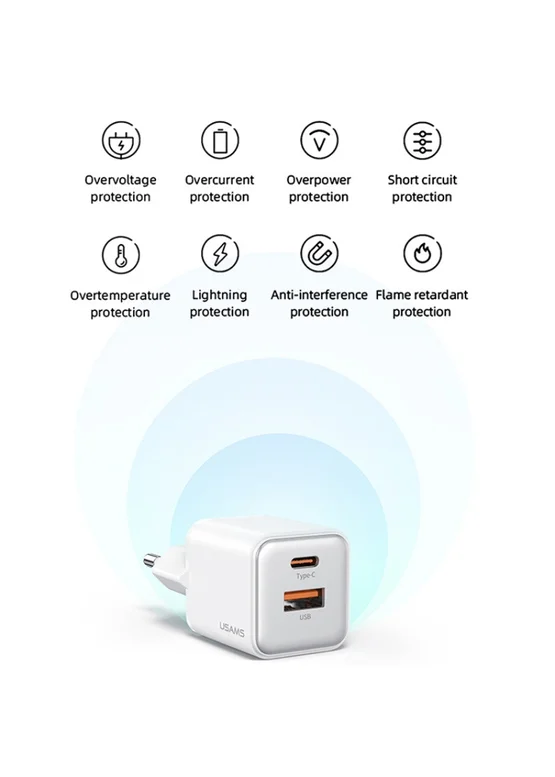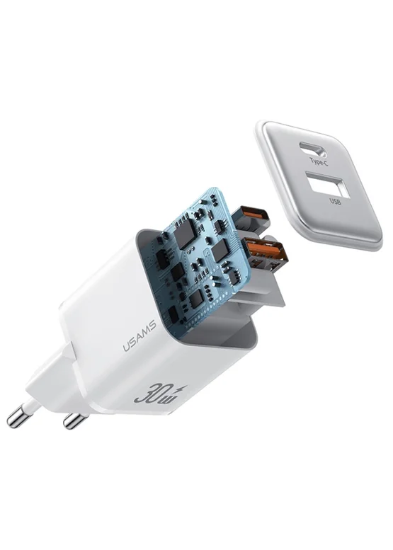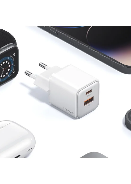 СЗУ Usams US-CC189 PD30W + QC3.0 A+C X-ron Series White