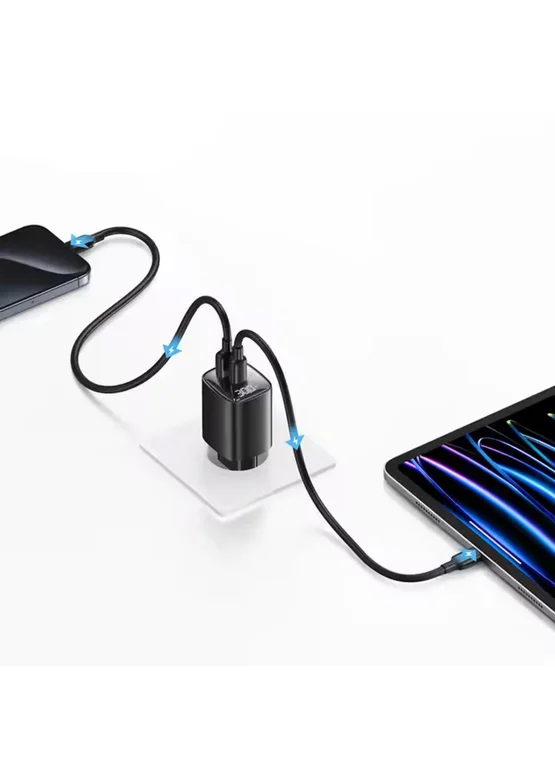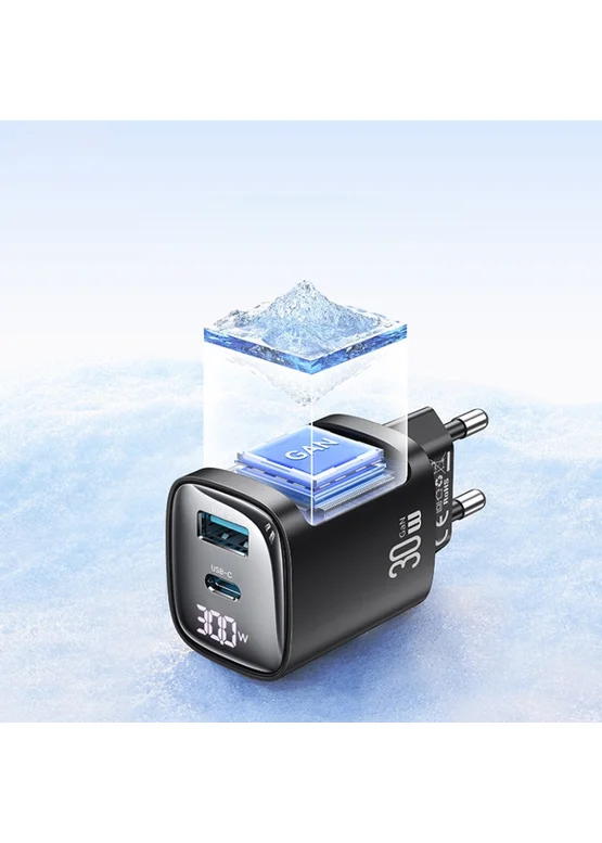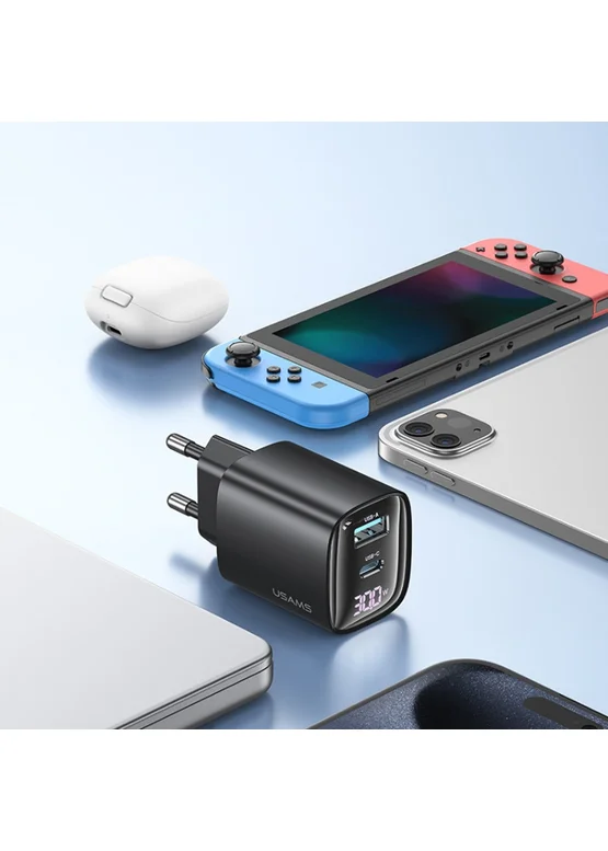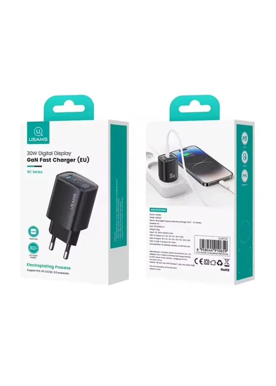 СЗУ Usams US-CC229 GaN Digital Display XC Ser. 30W (1USB-A/1C)