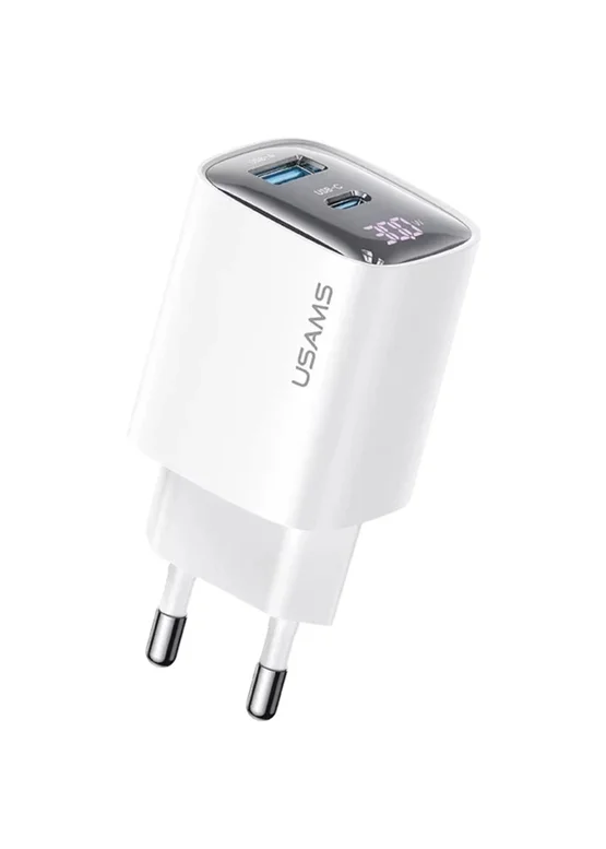СЗУ Usams US-CC229 GaN Digital Display XC Ser. 30W (1USB-A/1C) White