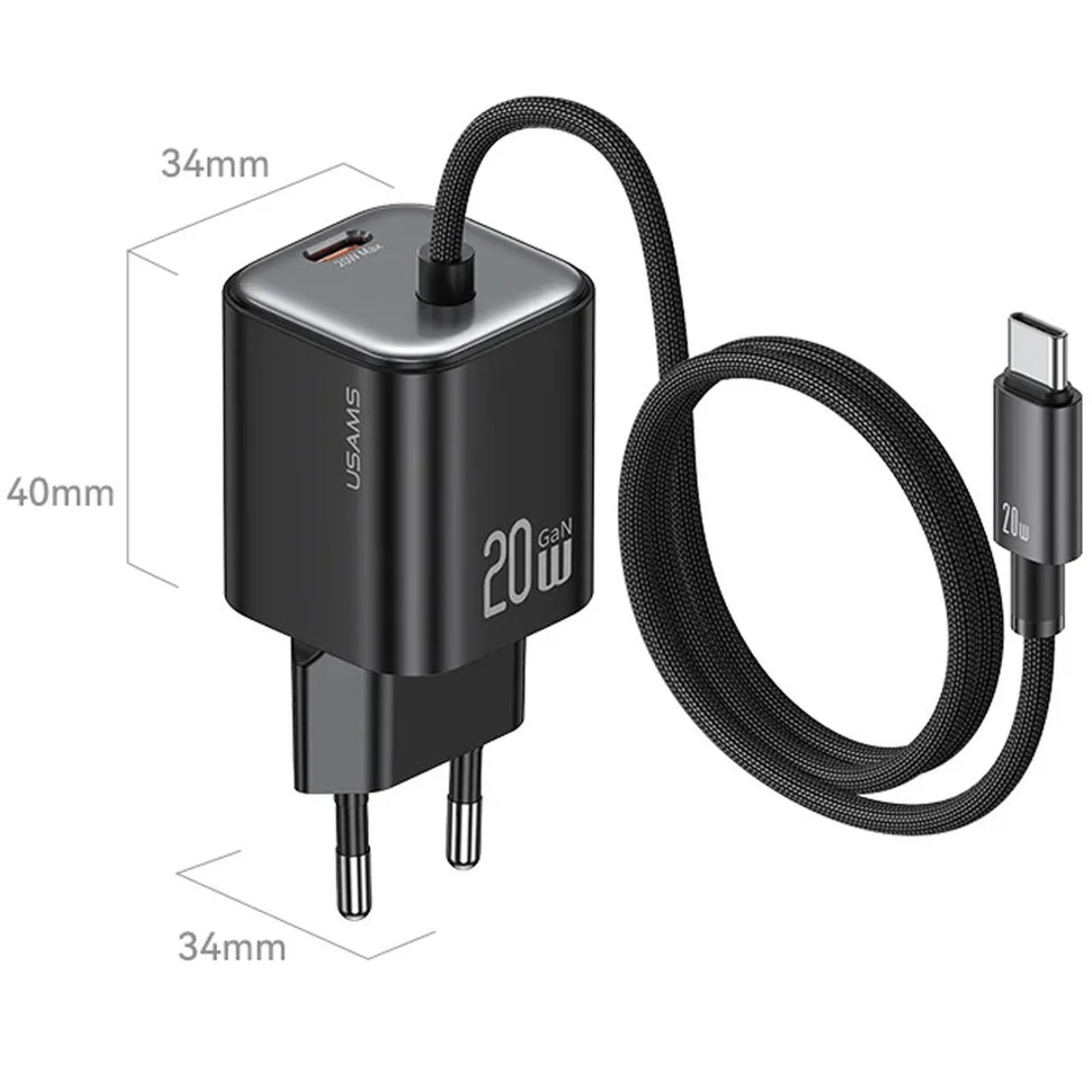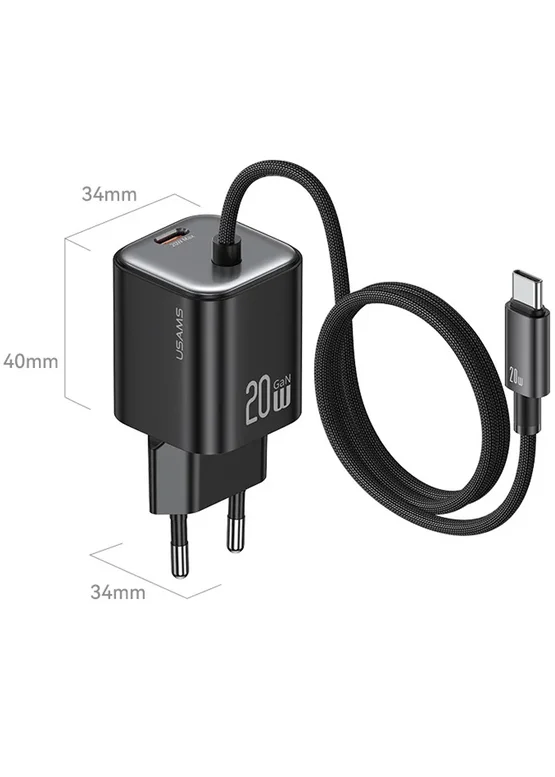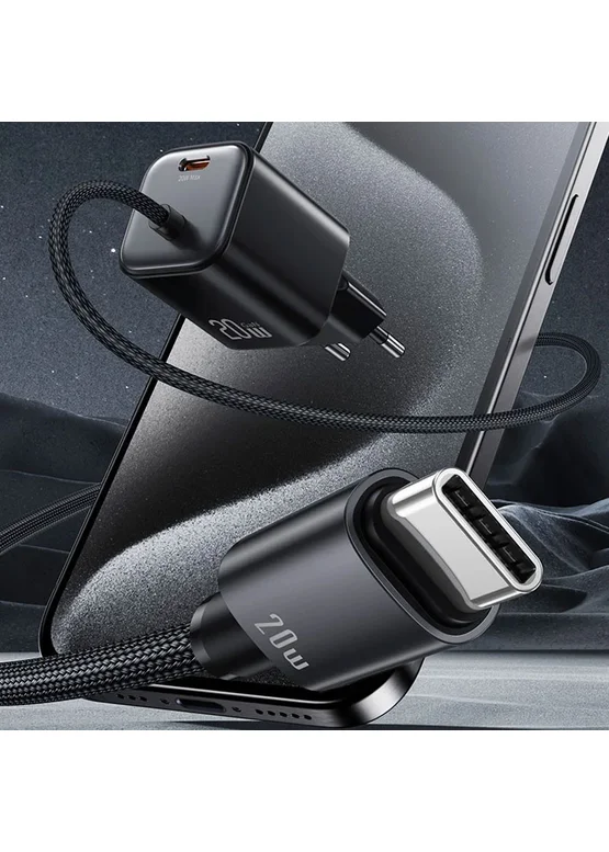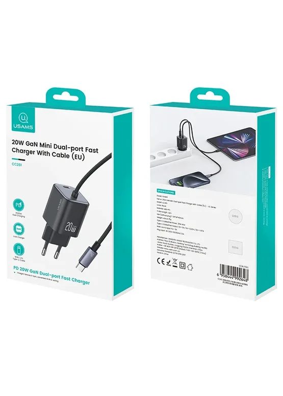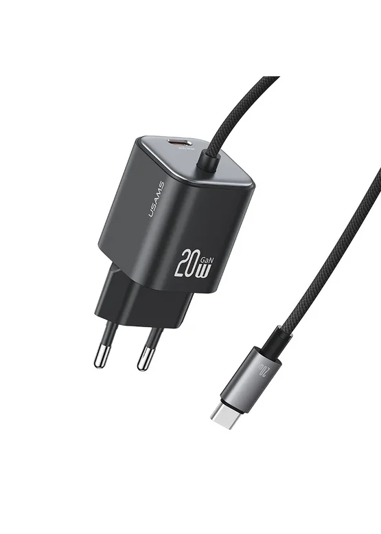 СЗУ Usams US-CC261 GaN JC Ser. 20W (2USB-C) + кабель Type-C to Type-C Black