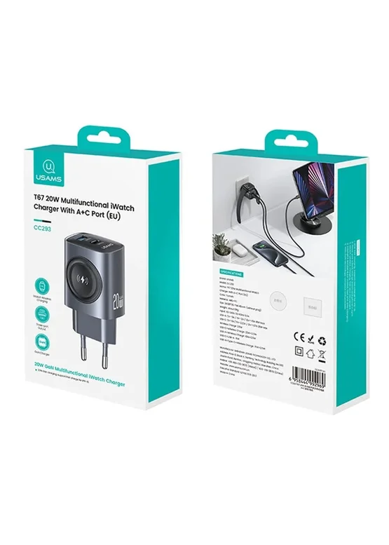 СЗУ Usams US-CC293 T67 Multifunctional iWatch Charger 20W (1USB-A/1C) Tarnish