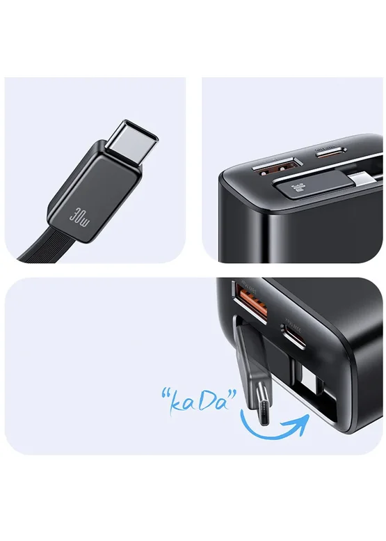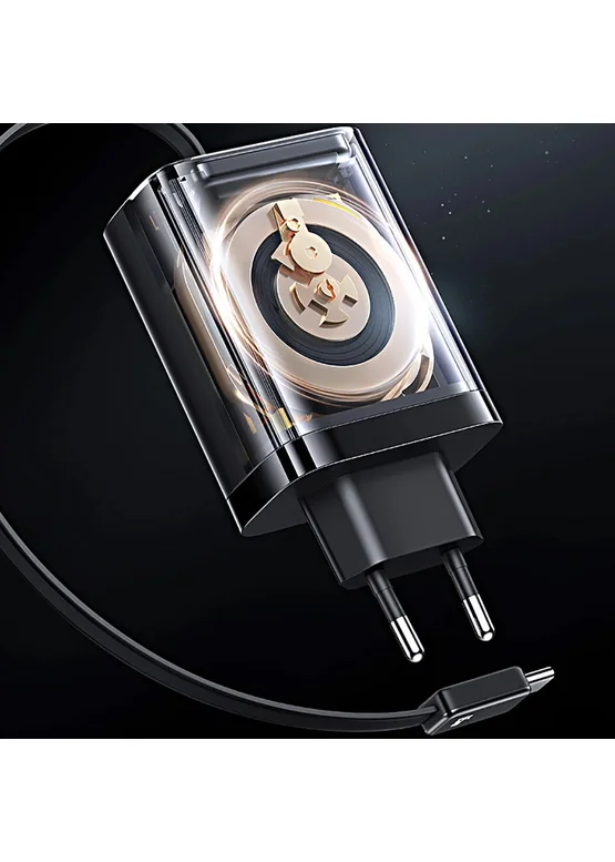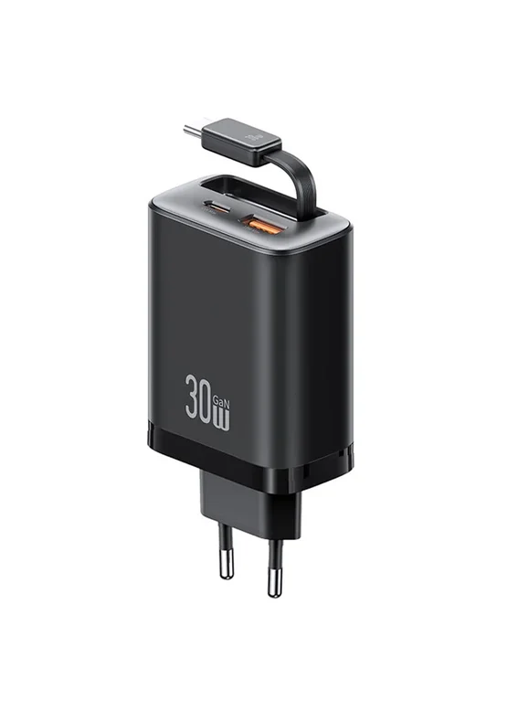 СЗУ Usams US-CC296 GaN With Retractable Type-C Cable Xiang Ser. 30W (1USB-A/1C) Black