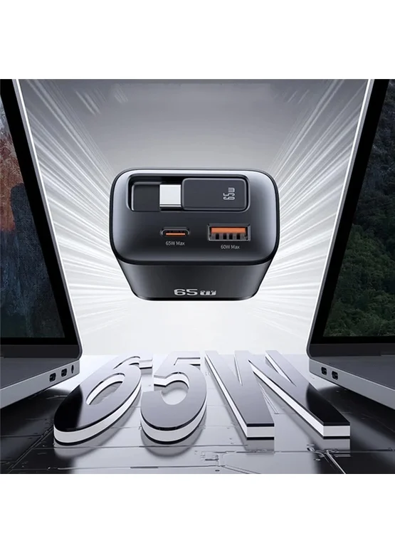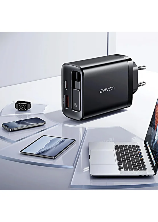 СЗУ Usams US-CC299 GaN With Retractable Type-C Cable Xiang Ser. 65W (1USB-A/1C)