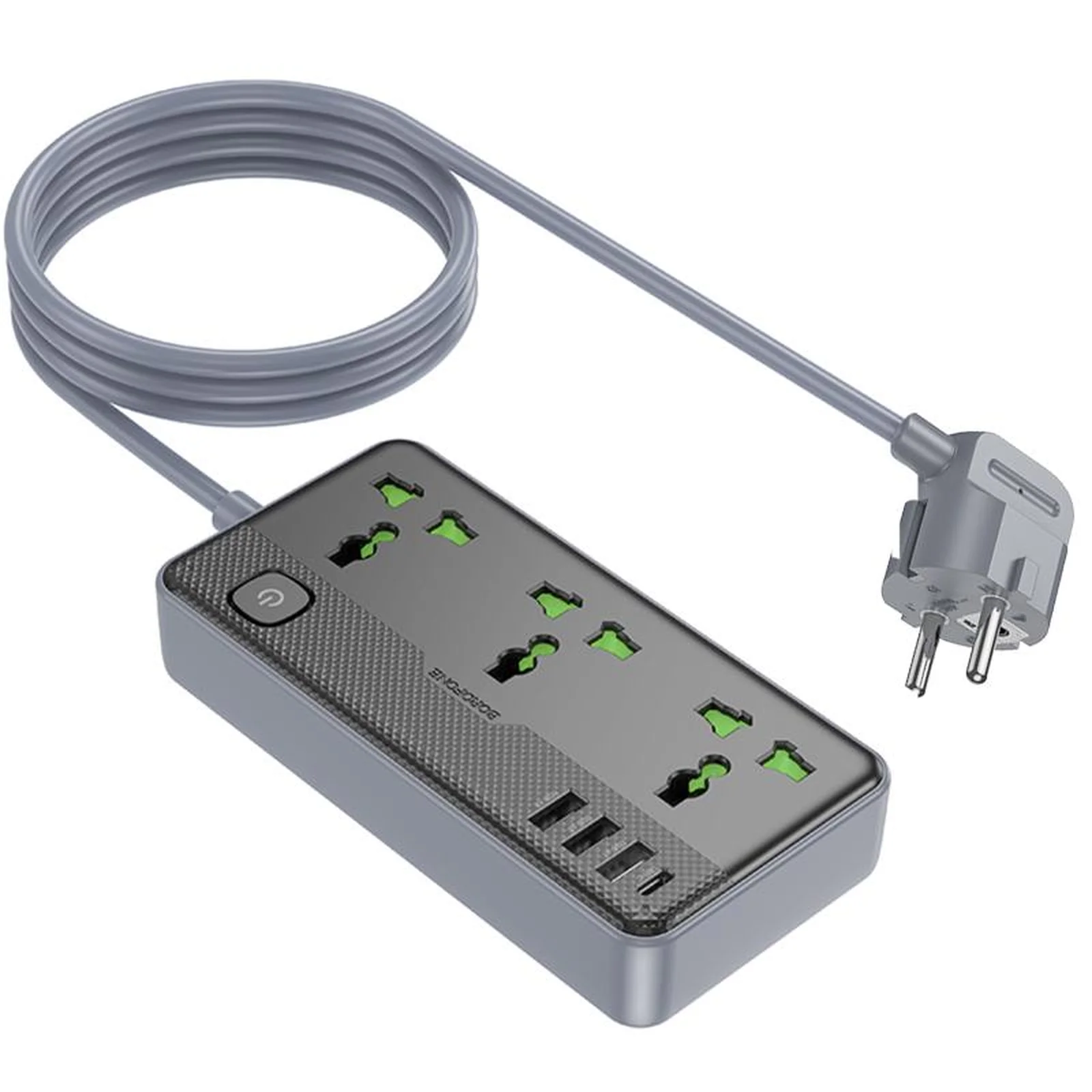Удлинитель Borofone BAC2 Leya (3USB-A/1C/3xSocket) (1.5m) Black