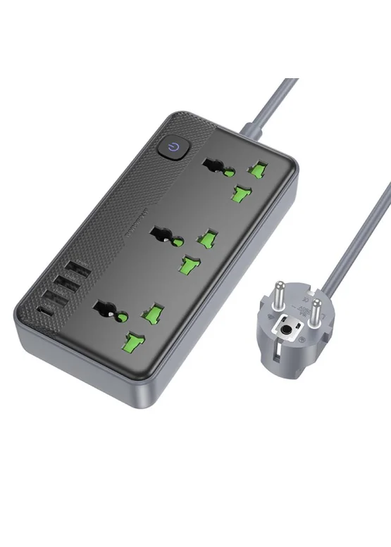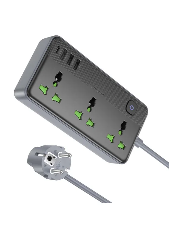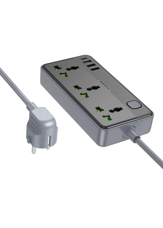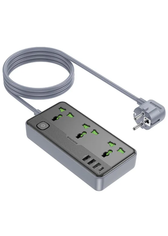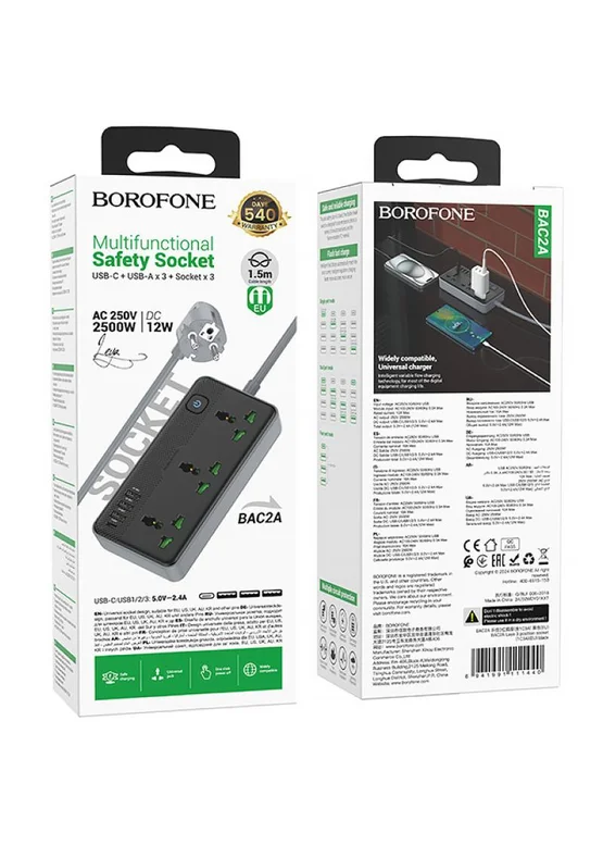 Удлинитель Borofone BAC2A (3USB-A/1C/3xSocket) (1.5m) Black