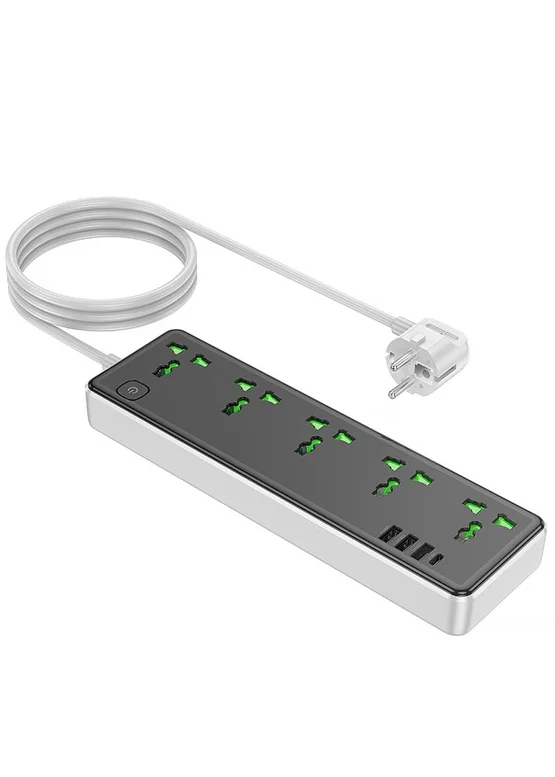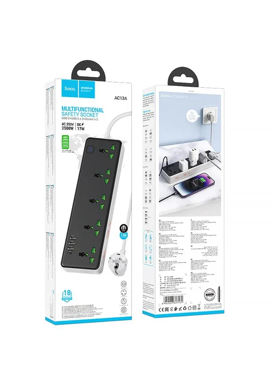 Удлинитель Hoco AC13A Safety Socket (3USB-A/1C/5xSocket) (1.5m) Black
