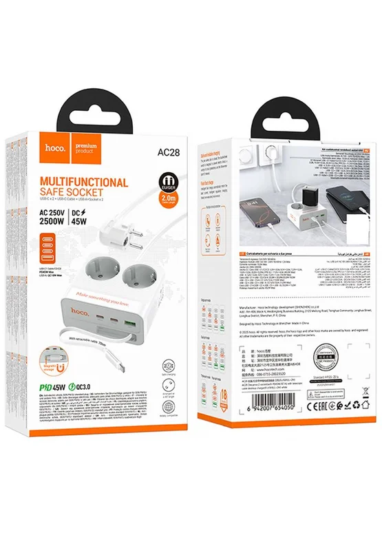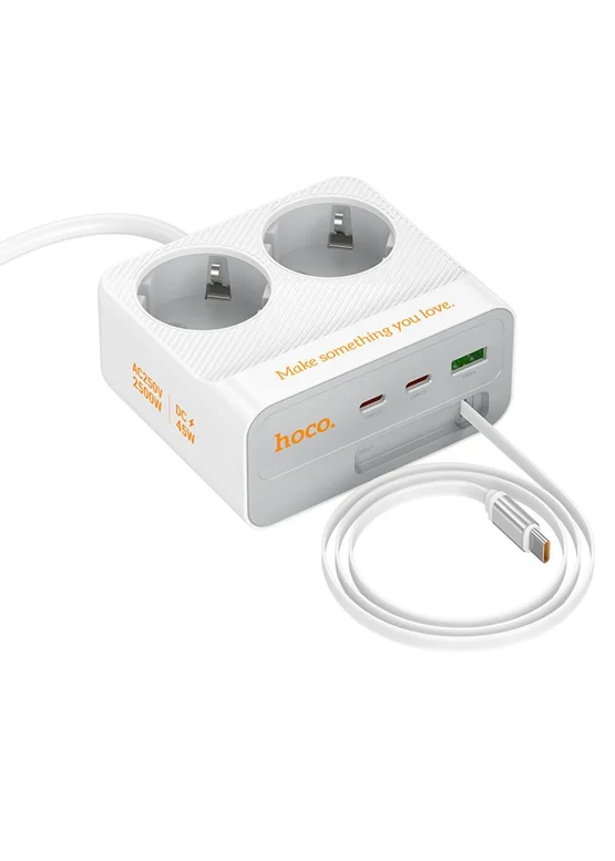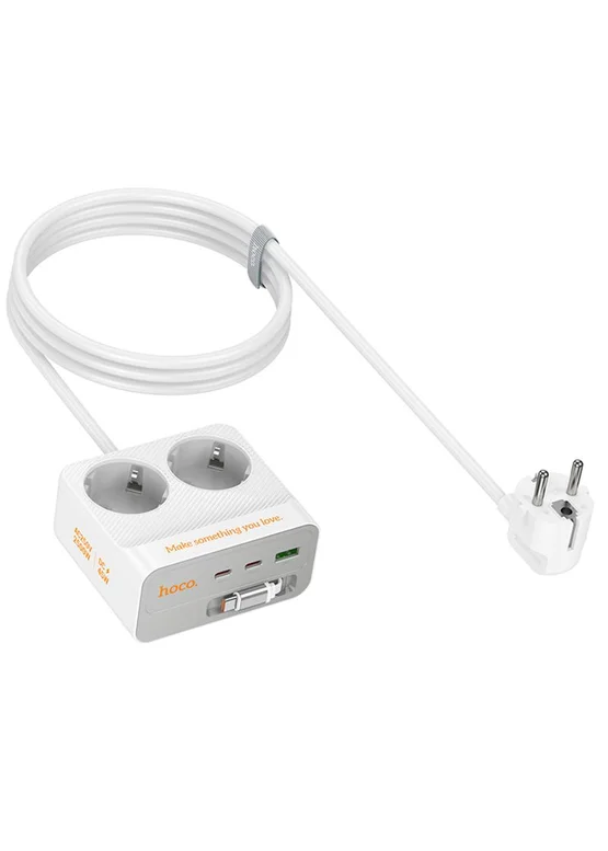 Удлинитель Hoco AC28 Descanso (PD45W/1C/3A/2xSocket) (2m) White