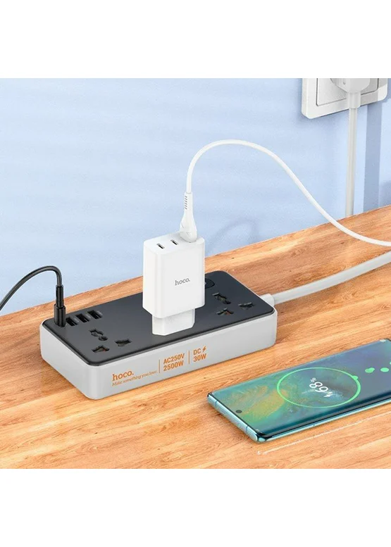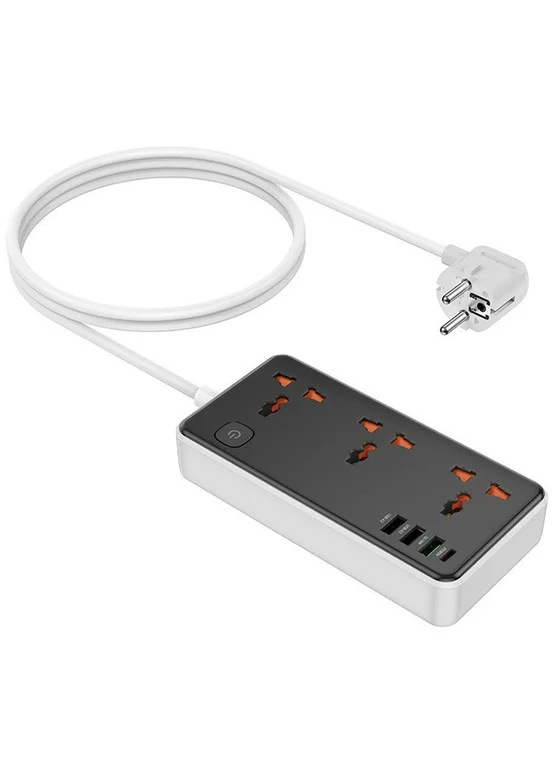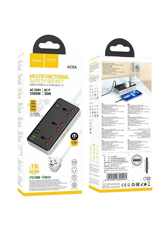 Удлинитель Hoco AC8A Storm (PD30W/1C/3A/3xSocket) (1.5m) Black