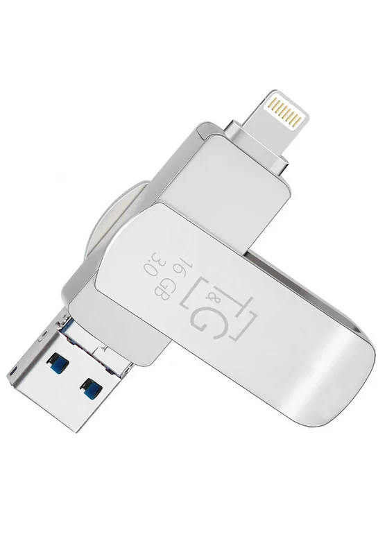 Флеш-драйв T&G 007 Metal series USB 3.0 - Lightning - MicroUSB 16GB Серебряный