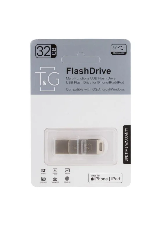 Флеш-драйв T&G 008 Metal series USB 3.0 - Lightning 32GB Серебряный