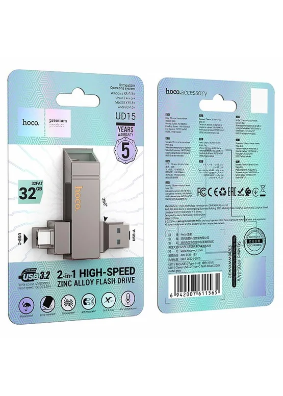 Флеш-накопитель Hoco UD15 2in1 Type-C USB 3.2 - 32GB Silver
