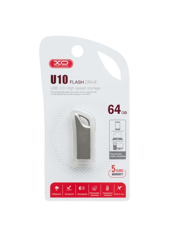 Флеш накопитель XO U10, 64GB USB 2.0 (Серебряный)