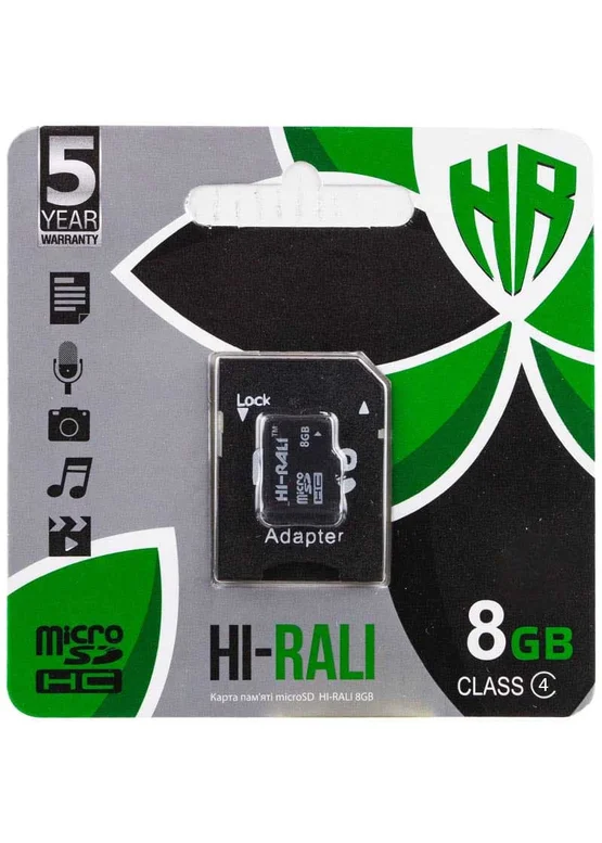 Карта памяти Hi-Rali microSDHC 8 GB Card Class 4 + SD adapter Черный