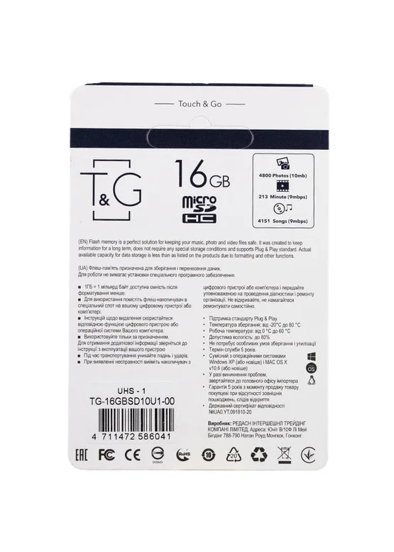 Карта памяти T&G microSDHC (UHS-1) 16 GB class 10 (без адаптера) Черный