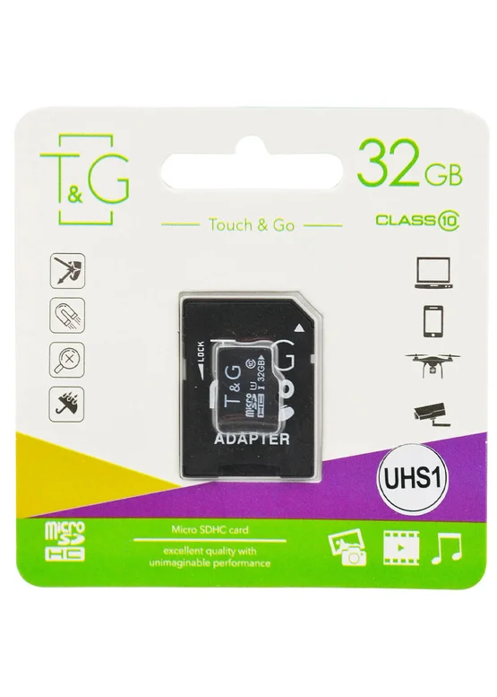 Карта памяти T&G microSDHC (UHS-1) 32 GB class 10 (с адаптером) Черный