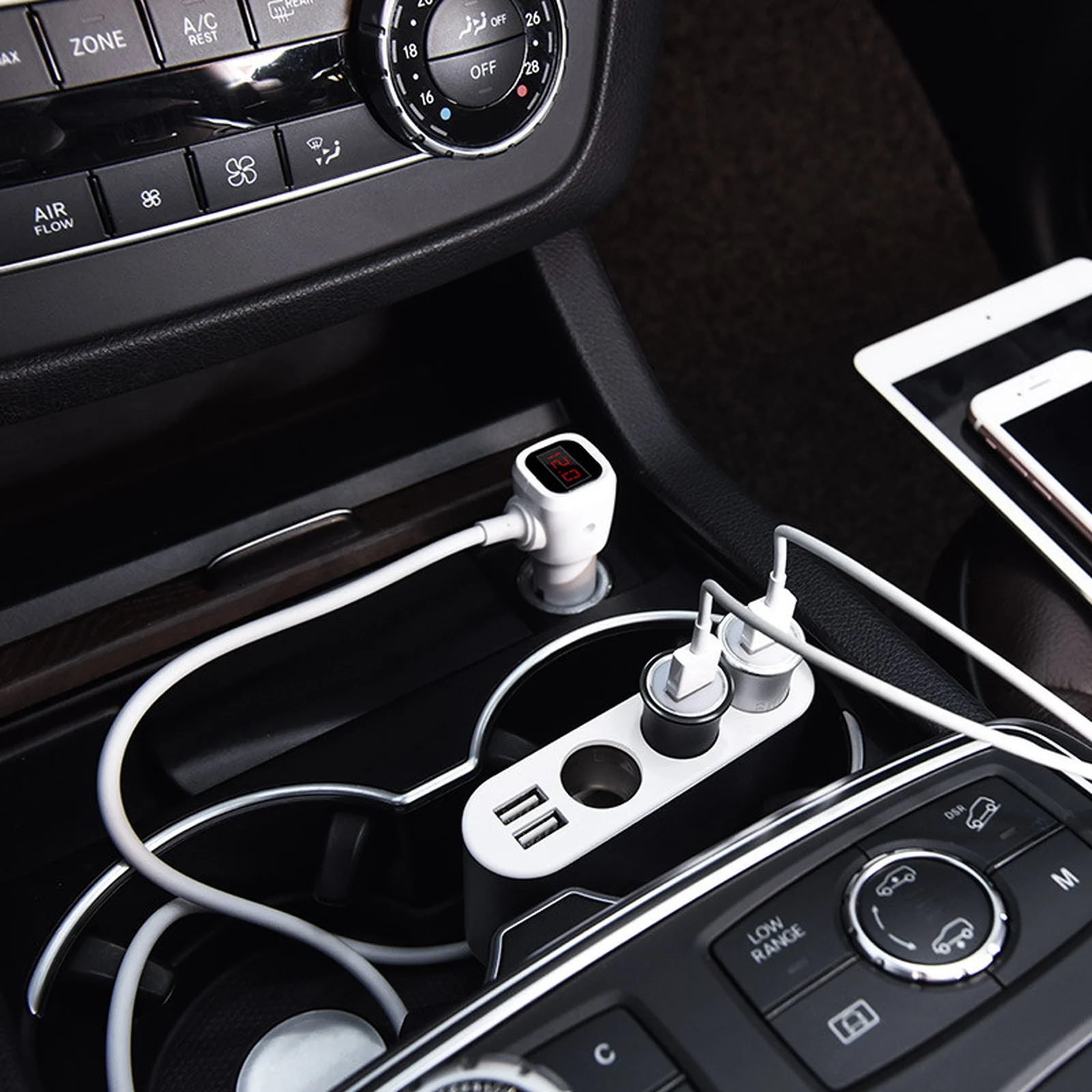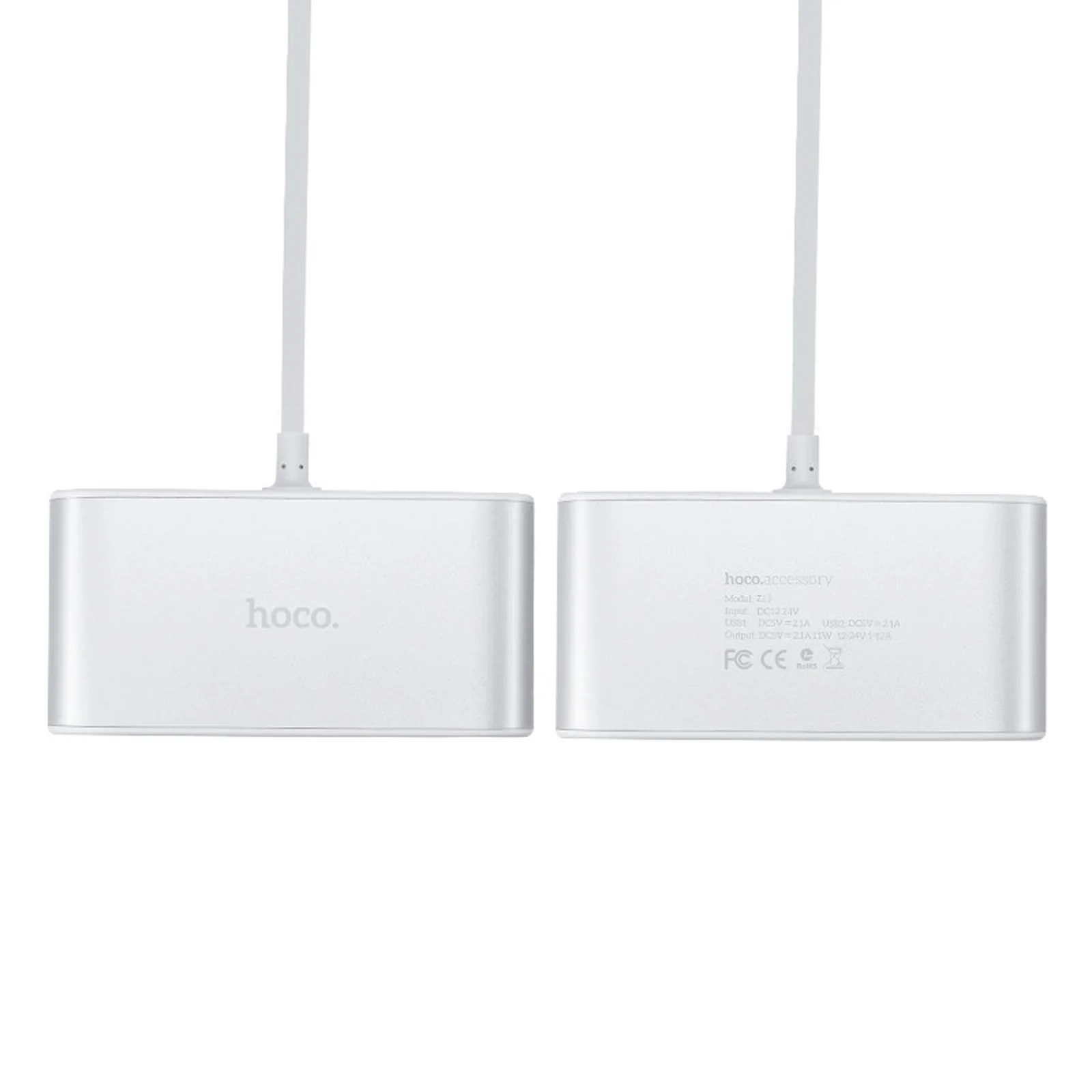 АЗП з перехідником прикурювача Hoco Z13 (3 порту + 2USB / 2.1A + LCD) (Сталевий)